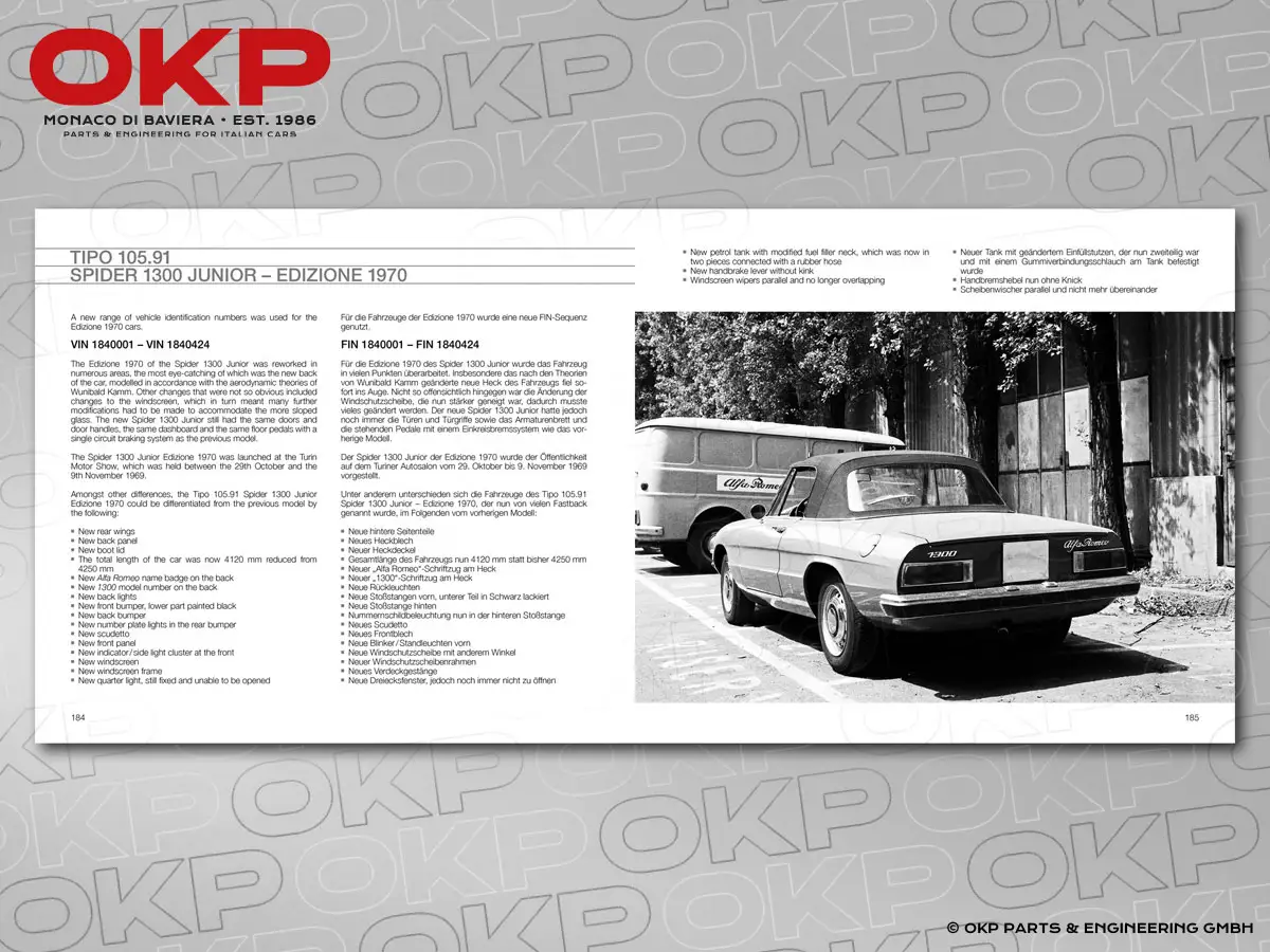 Auf 312 Seiten werden mit ausnahmslos zeitgenössischen, überwiegend noch nie veröffentlichten Photos die folgenden Modelle dieses Typs, die bei Alfa Romeo in den Jahren 1966 bis 1977 vom Band gelaufen sind, dokumentiert: