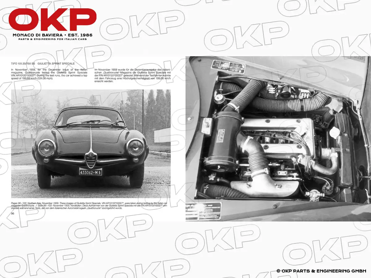 Der erste Band dokumentiert ausführlich die Entwicklung der Giulietta Sprint Speciale Tipo 101.20/750 SS, der Giulietta Sprint Speciale Tipo 101.20, der Giulietta Sprint Speciale U.S.A. Tipo 101.17 und der Giulia SS Tipo 101.21 sowie die Renngeschichte der Giulietta Sprint Speciale Tipo 101.20/750 SS in Italien von Juni 1959 bis Mai 1960.