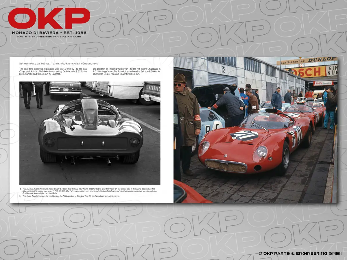 In diesem Buch geht es ausschließlich um die Entwicklung des Tipo 33 und die Rennaktivitäten im Jahr 1967.