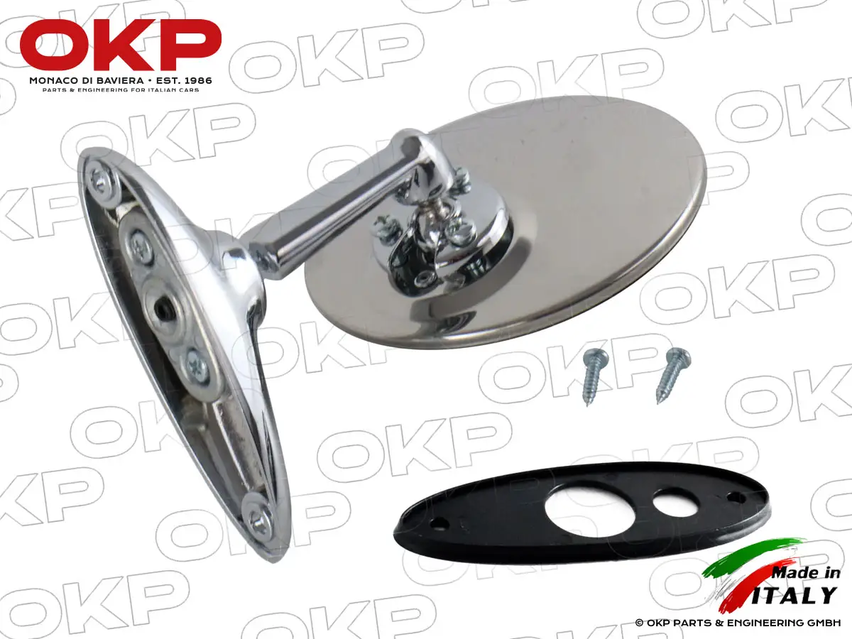 Hochwertiger, klassisch verchromter Außenspiegel im stilvollen Retrodesign - perfekt für die stilechte Restaurierung oder Individualisierung. Der Spiegel wird fest verschraubt und bietet durch den Lochabstand von 85 mm eine passgenaue Montage an vielen klassischen Fahrzeugen.