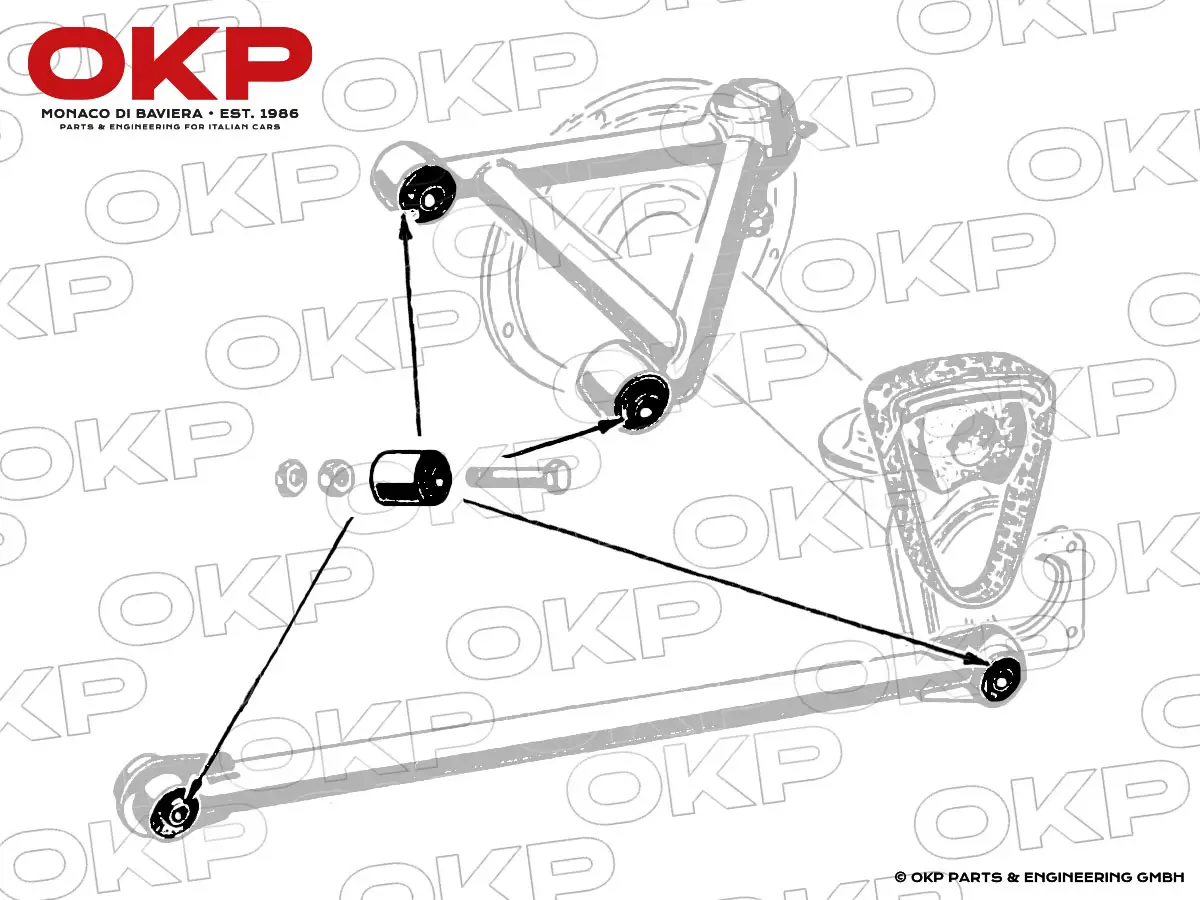 Präzise gefertigte Gummibuchse für den hinteren Längslenker der Alfa Romeo Baureihen 750 / 101 Giulietta und Giulia. Diese Buchse gewährleistet eine exakte Führung der Hinterachse und reduziert wirkungsvoll Schwingungen und Spiel im Fahrwerk.