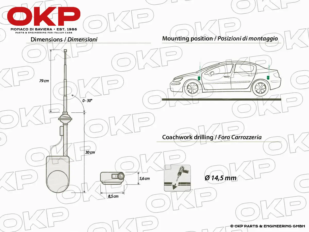 Elektrische Antenne schwarz universal Alfa / Ferrari