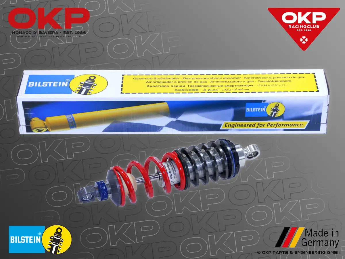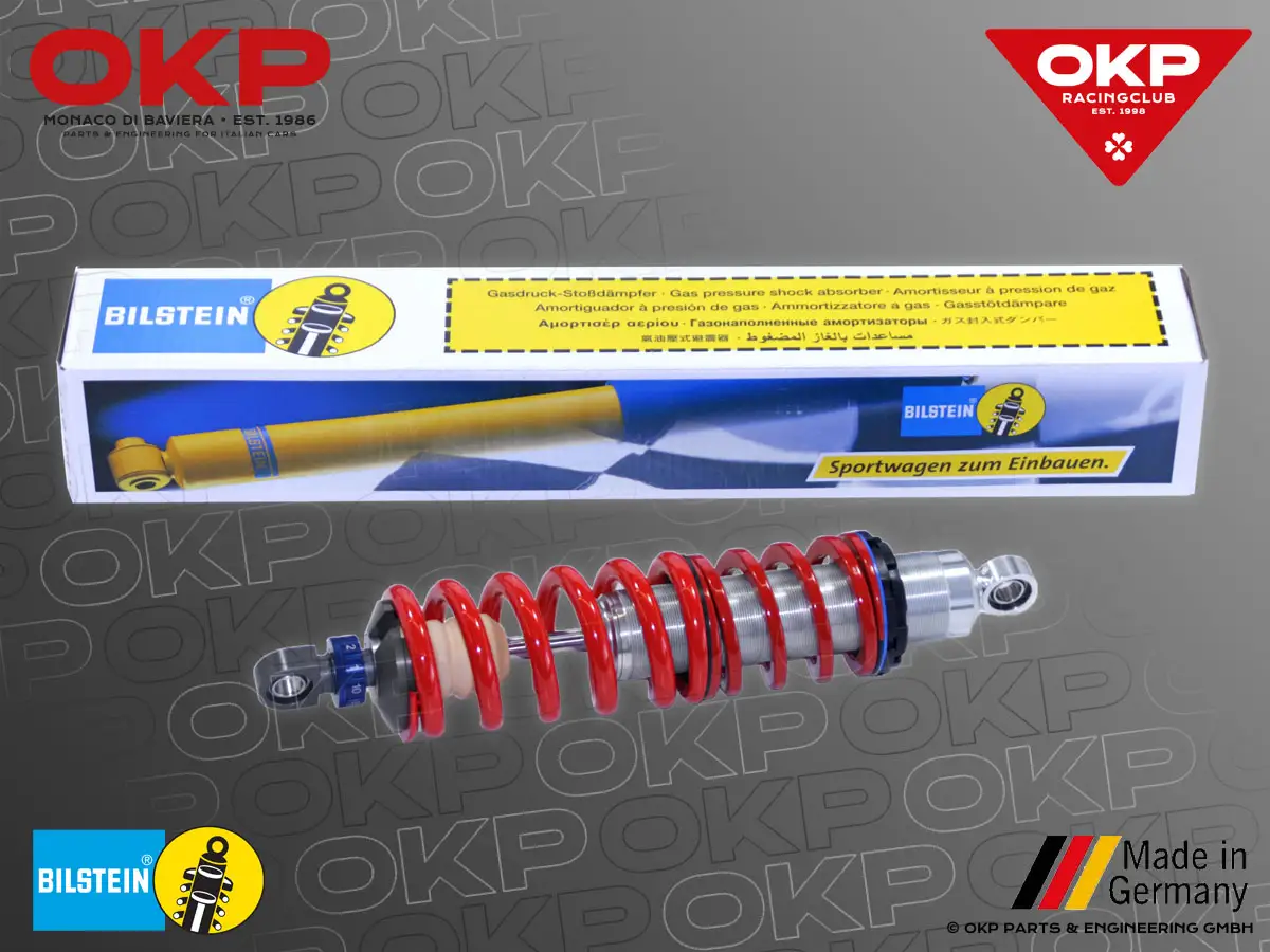 Exklusiv für OKP entwickelt. BILSTEIN Stoßdämpfer für Ferrari 308 auf Basis der Bilstein B16 PSS10 Technologie. 10-stufige Verstellung, in Zug- und Druckstufe frei wählbar. Entwickelt für das perfekte Fahrvergnügen nach individuellen Ansprüchen und abgestimmt für die verschiedenen internationalen Rennstrecken.