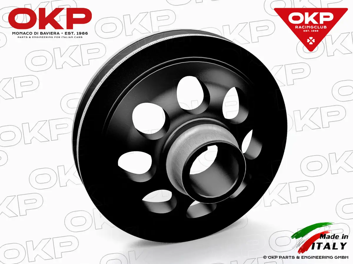 Diese aus hochfestem Spezial Aluminium gefertigte und gelochte Riemenscheibe ist gegenüber dem Originalteil um 50% leichter.